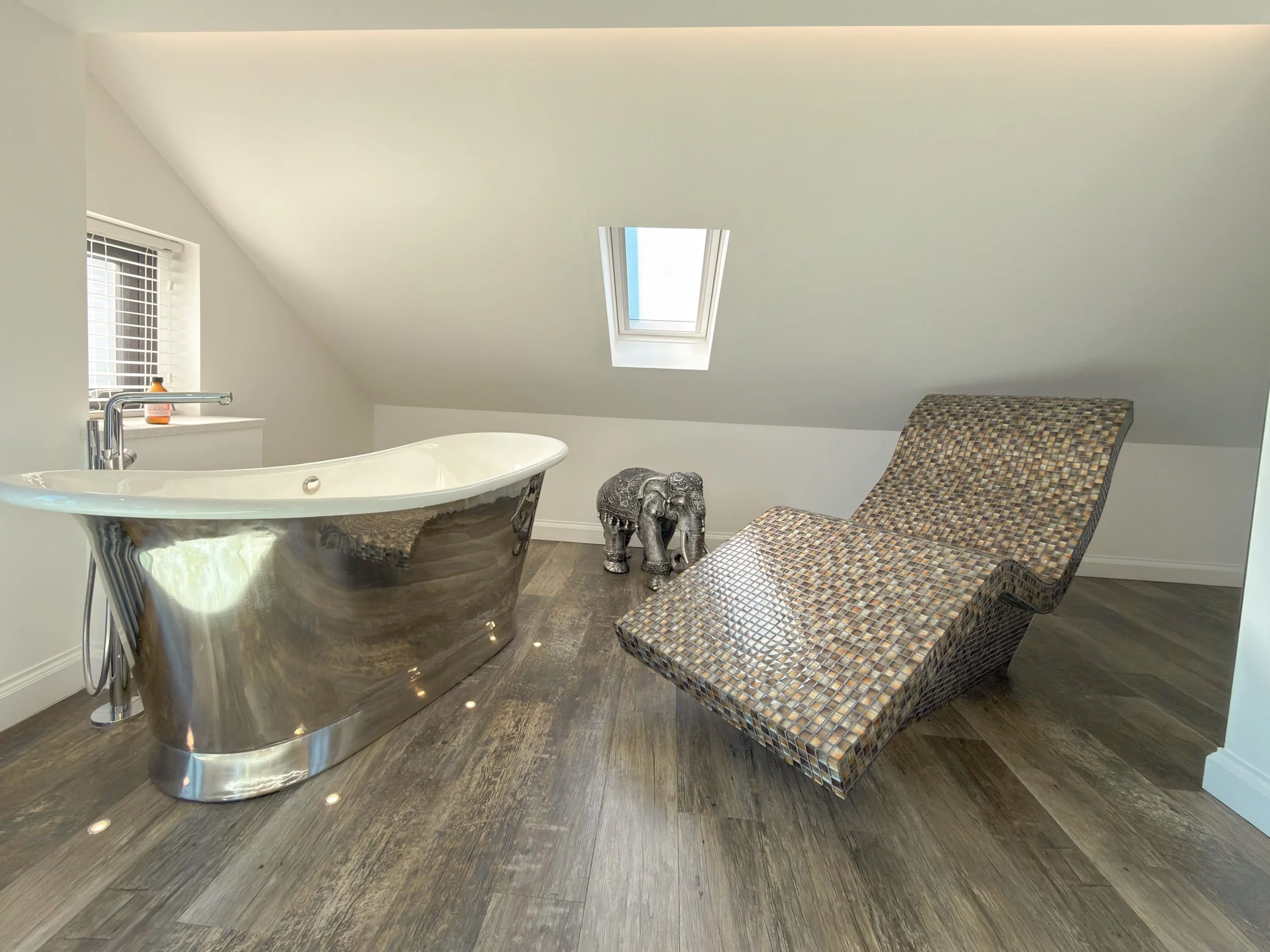 The free-standing bateau spa bath has a glistening nickel exterior and enameled interior which has been meticulously hand finished by master craftsmen at the world’s leading specialist manufacturer of copper baths.