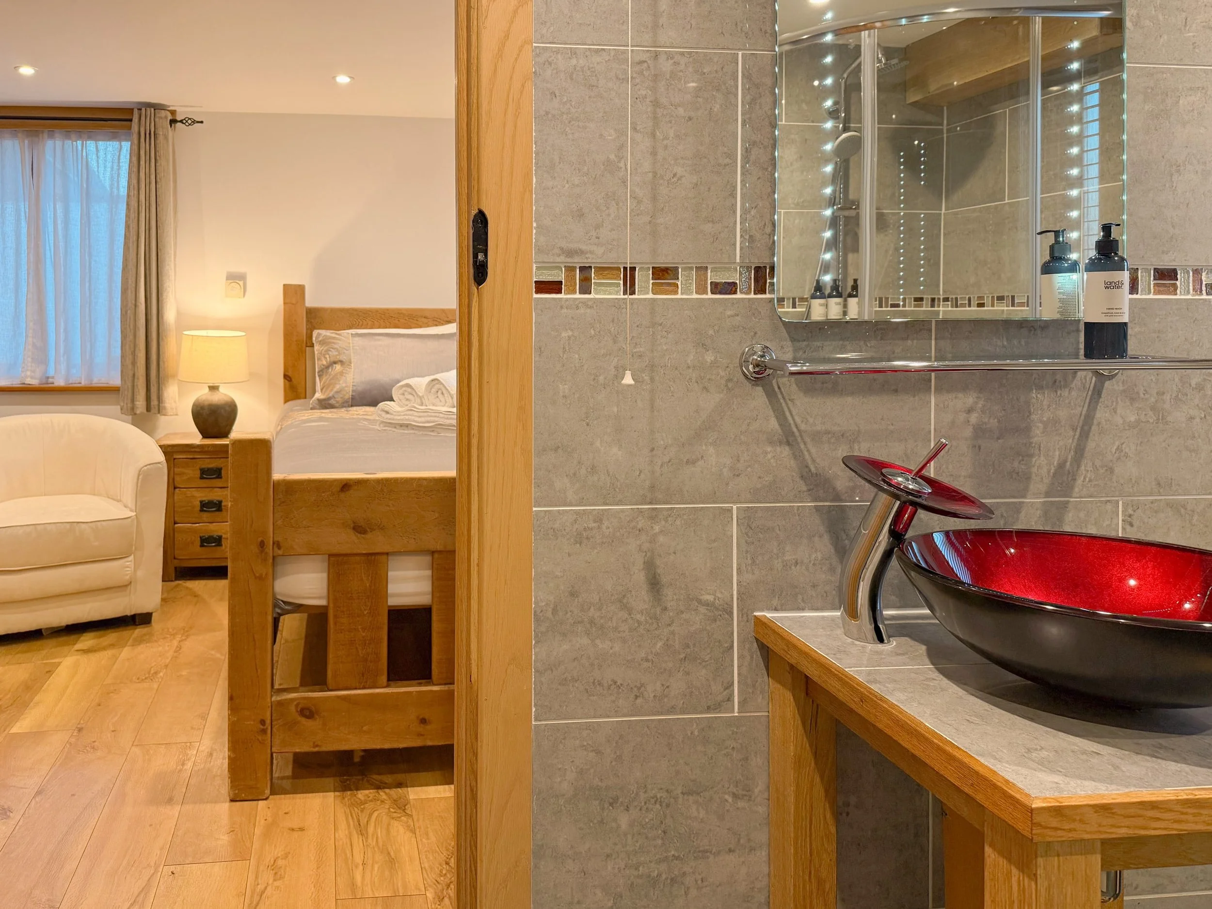 Pengenna Parlour features quality hand made chunky oak doors and underfloor heating that keeps you snug and cosy in the colder months.