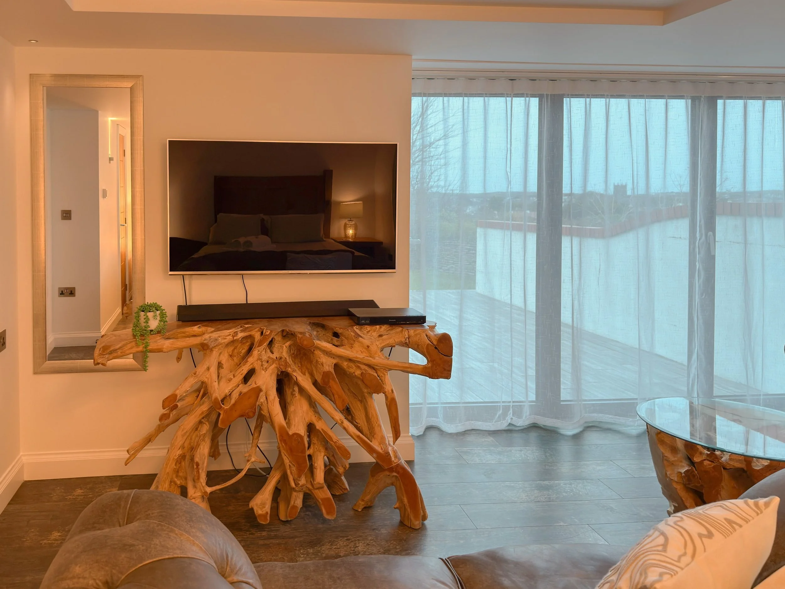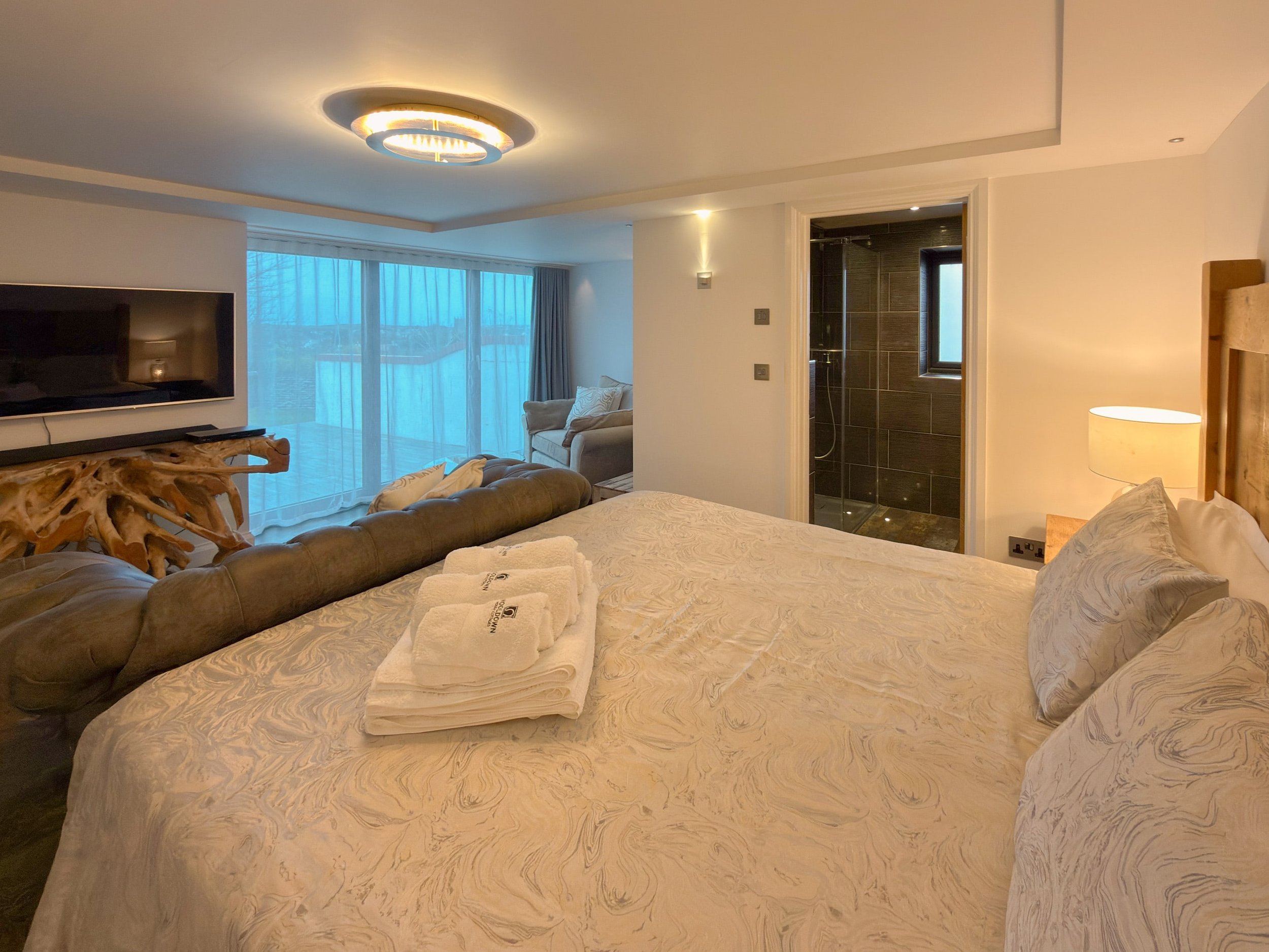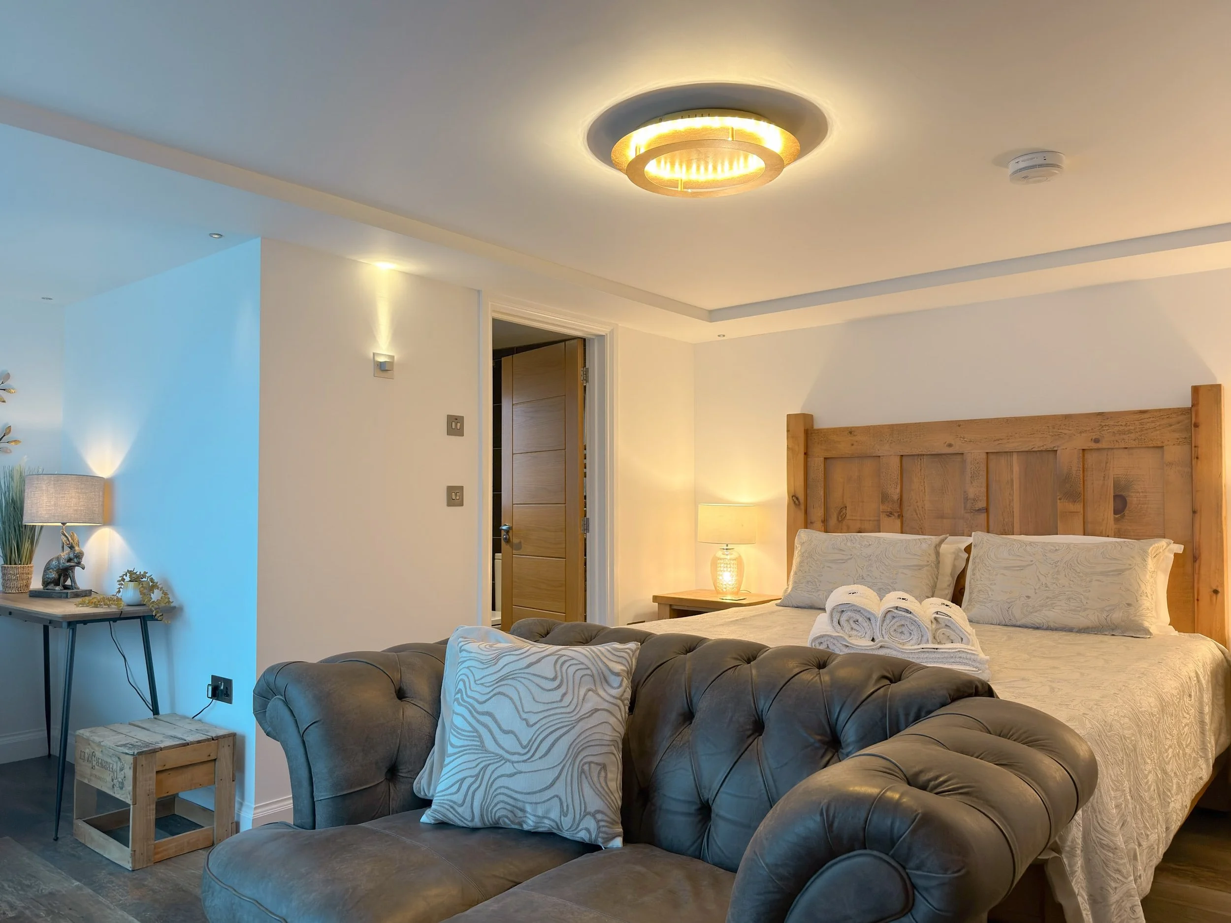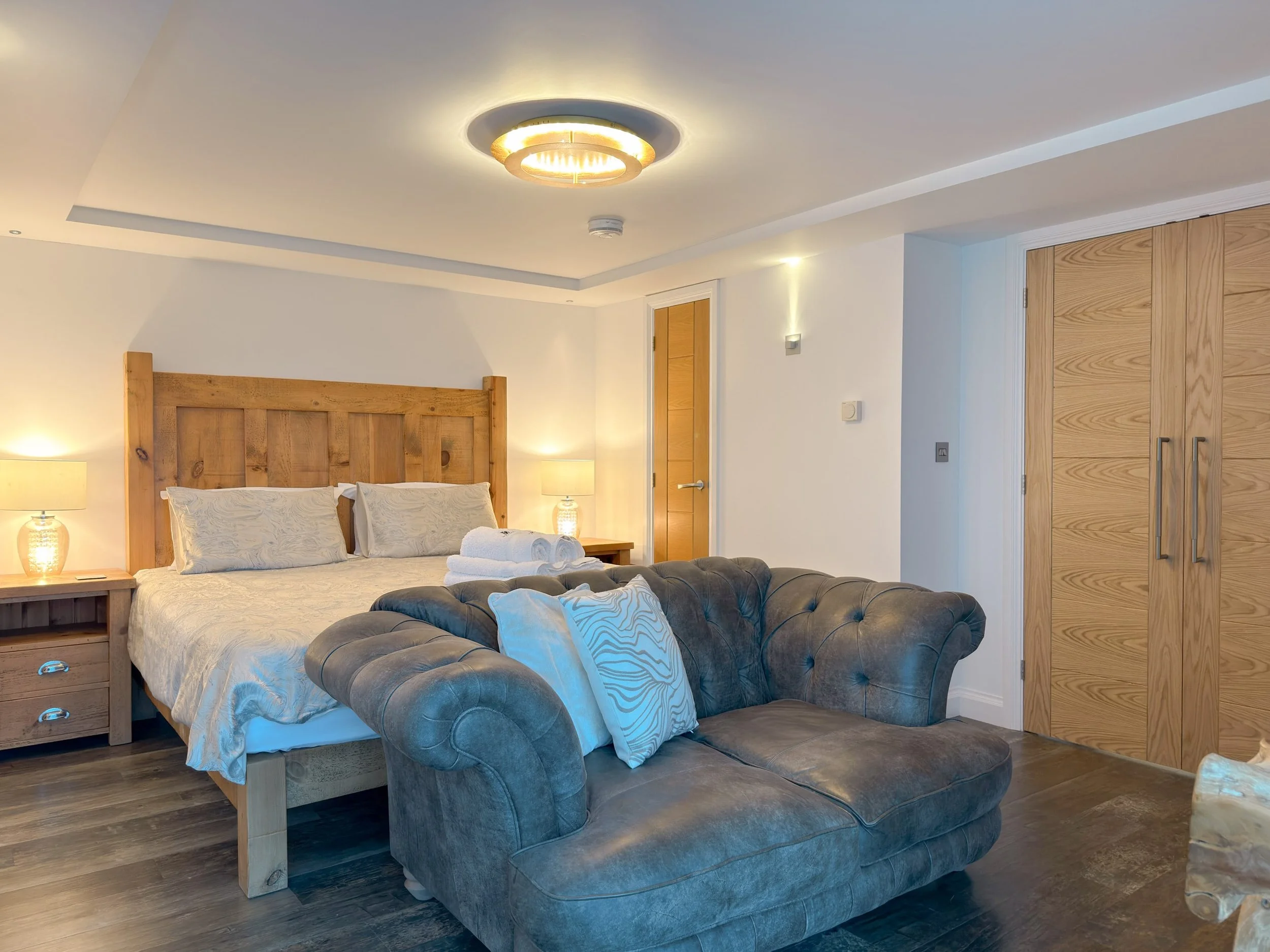 The bedroom has a Canadian pine, super-king size bed with a memory foam mattress.