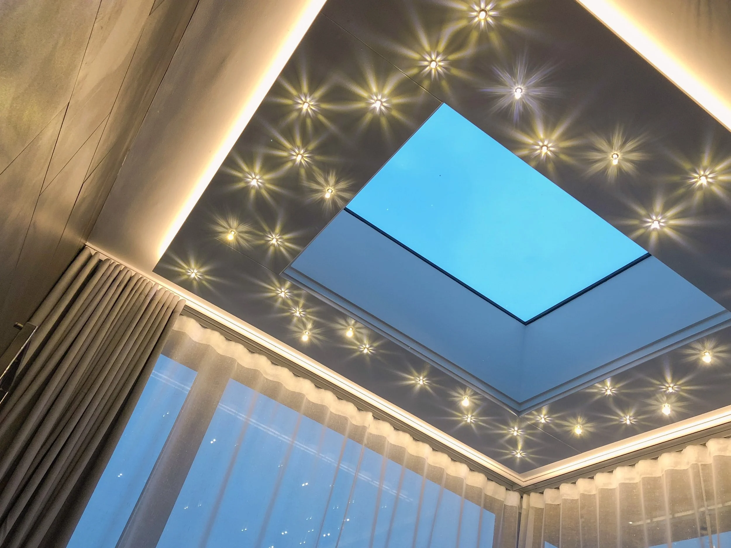 Look up to see the stars through the glass ceiling or the shimmering Swarovski® Crystal Star lighting display, creating a special atmosphere. Open the sliding door to bring the outside, in.